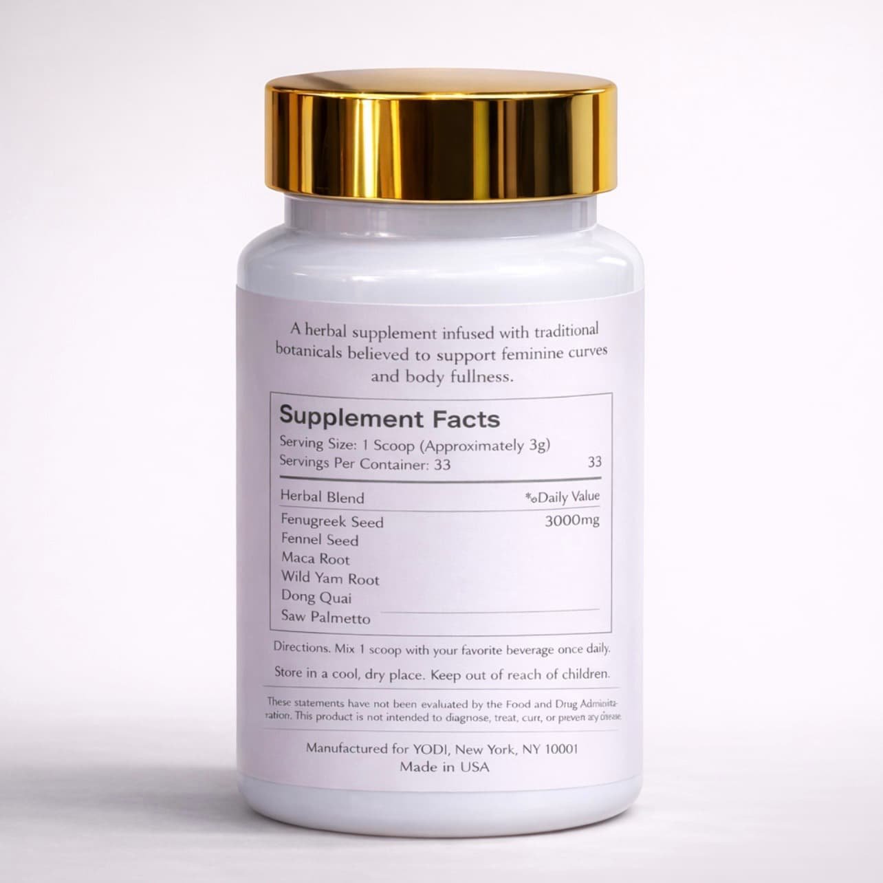 A premium herbal formulation designed to support natural curves by promoting fuller-looking hips and buttocks. Yodi Advanced Powder blends traditionally respected botanicals with modern formulation standards for women seeking elegant, gradual body enhancement.